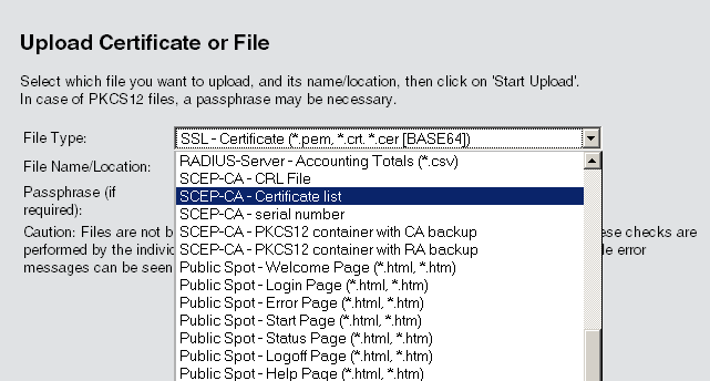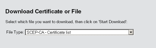 - SCEP certificate list: List of all certificates ever issued by the SCEP-CA.