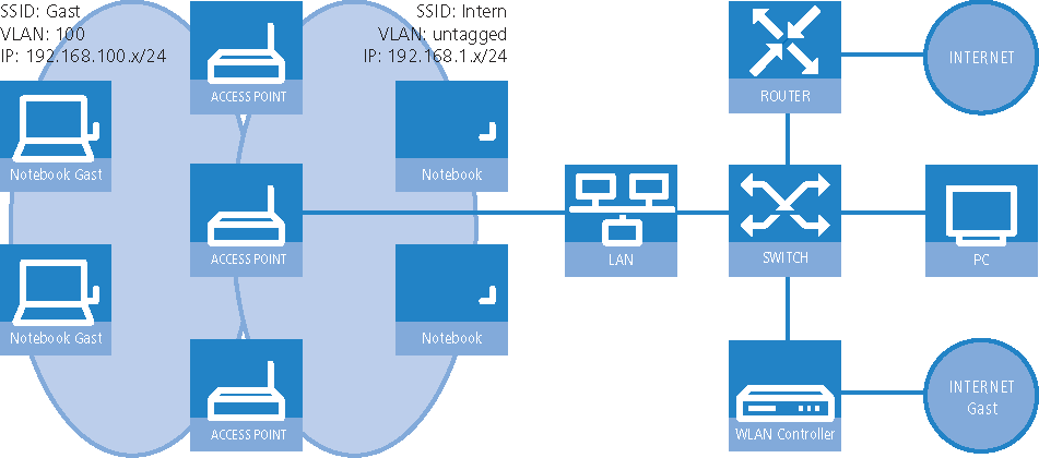 - The wired infrastructure is based on managed VLAN-capable switches: