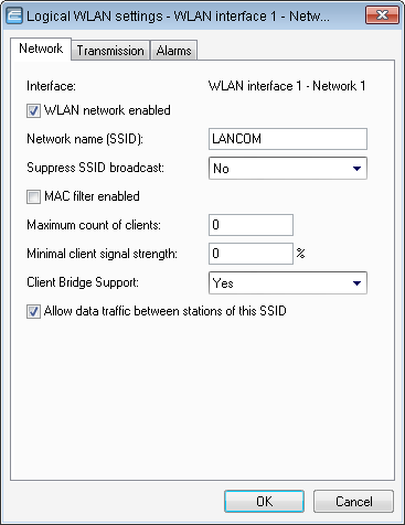LANconfig:Wireless LAN > General > Logical WLAN settings > Network