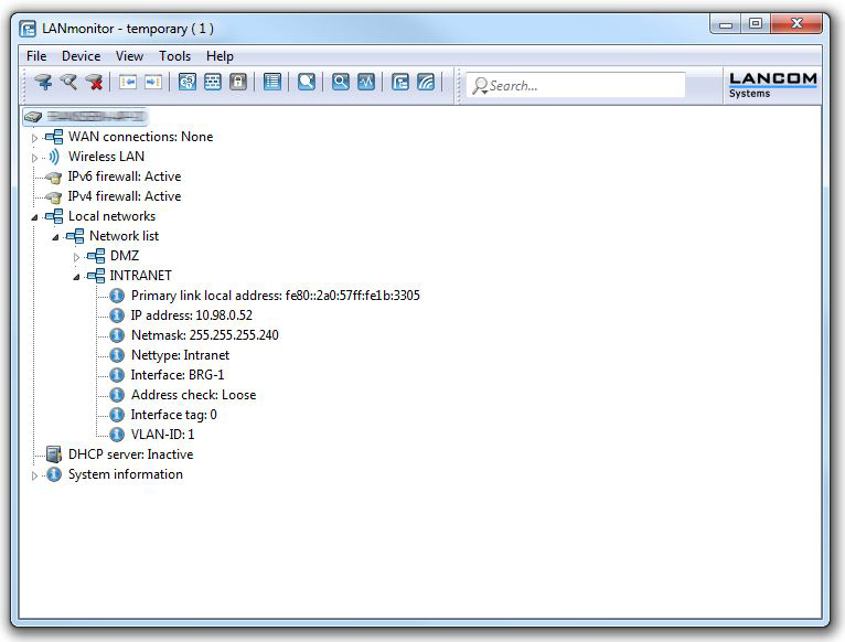 As of LCOS version 8.80, LANmonitor can display the IPv6 addresses of local networks. This display function is available in various places within the menu.