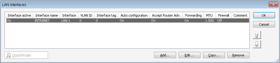 This shows the table with a LAN interface: