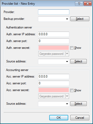When configuring a Public Spot, user registration data can be forwarded to one or more RADIUS servers. These servers are configured under Public Spot > Users > Authentication servers. The registration data that individual RADIUS servers require from the clients is not important to the device that provides the Public Spot, since this data is transparently passed on to the RADIUS server.