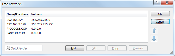 If you wish to authorize a domain or just a single workstation with the address named earlier, set 255.255.255.255 as the netmask here. If you wish to authorize a whole IP network, specify the corresponding netmask. If you do not set a netmask (value 0.0.0.0), the device ignores the table entry.
