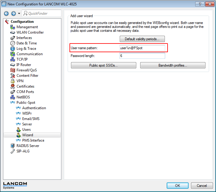 • LANconfig:Public Spot > Wizard > Add user wizard