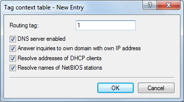 If an entry for a tag context exists, then only the DNS settings in this table apply for this context. However, if there is no entry in this table, then the global settings of the DNS server apply.