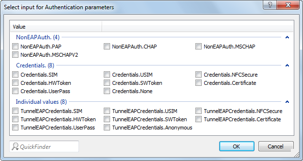 Using this table you manage the profile lists for the NAI realms. With these lists you have the ability to group certain ANQP elements. These include the realms of the hotspot operator and its roaming partners, as well as the associated authentication methods and parameters. Stations use the information stored in this list to determine whether they have the hotspot operator or one of its roaming partners have valid credentials.