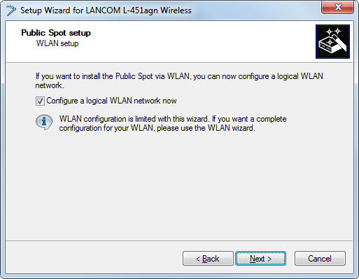 3. If you want the Public Spot to be available over WLAN, enable the corresponding option and then click Next.