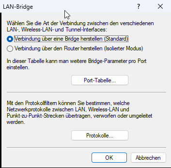 - In der WWAN-Bridge-Gruppe darf kein interner oder externe DHCP-Server aktiv sein.