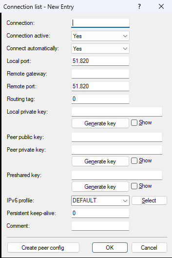 - The peer private key is optional and only configured when LANconfig is used to generate a configuration or QR code for the remote side. It is not required for LCOS functionality and is only stored so that the configuration for the remote side can be displayed or regenerated later.