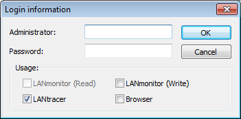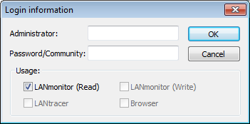 - Enter the access credentials for the external programs in this field. Click New to select one or more application(s) and enter the corresponding access credentials. Depending on your selection, the dialog window requests different access credentials. If you invoke the program from LANconfig, you have the option of authenticating yourself with the username and password of your administrator login.In the case of LANmonitor, you have the option to specify an individual SNMP community for read-only access. By default, when LANconfig opens a device configuration it checks whether and to what extent you have stored access credentials for external programs. If you do not have access credentials or if these credentials have been configured in the form of an SNMP community only, then invoking LANmonitor prompts LANconfig to take the SNMP community from the loaded device configuration. If you edit a configuration in LANconfig and you have set an SNMP community here, LANconfig automatically saves the SNMP community for the corresponding device. This convenient behavior reduces the scope of authentication for LANmonitor, so no separate configuration of the read-only access is required.