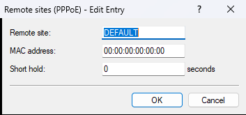 Leave the name of the Remote site as "DEFAULT". This entry is used for all PPPoE clients that are to be