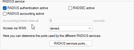 the internal RADIUS server is to be used, 127.0.0.1 can be entered as the IP address. |