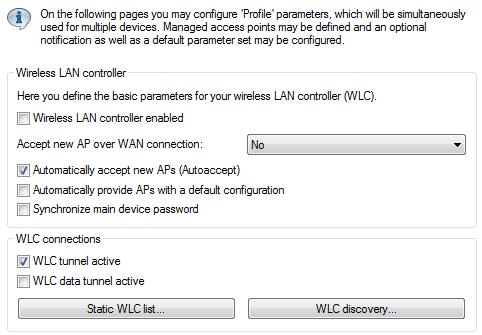 Note: After the initial start-up phase, the option Automatically accept new APs can be deactivated again so that no further APs are automatically accepted into the network.