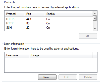 - Select a Protocol and click Edit to enable/disable the selected protocol for use in external programs, and to change the default port if necessary.