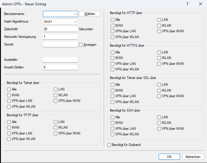 Die Einstellungen zu OTPs für die Administratoren-Accounts finden Sie in LANconfig unter .