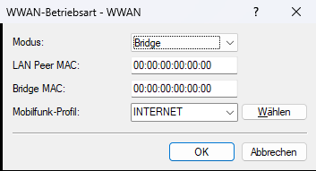- Der Router kann im Bridge-Betrieb nicht selbst über das Mobilfunkmodem mehr das Internet