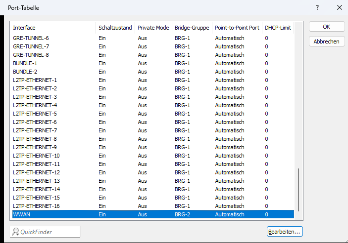 - In der WWAN-Bridge-Gruppe darf kein interner oder externe DHCP-Server aktiv sein.
