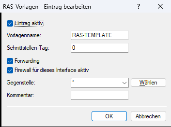 1. Aktivieren Sie die IPv6-RAS-Vorlagen unter IPv6 > Allgemein > RAS-Vorlagen > Bearbeiten des RAS-TEMPLATE > Eintrag aktiv.