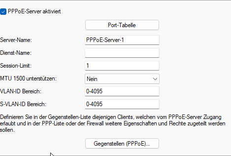 1. Aktivieren Sie die Option PPPoE-Server aktiviert.