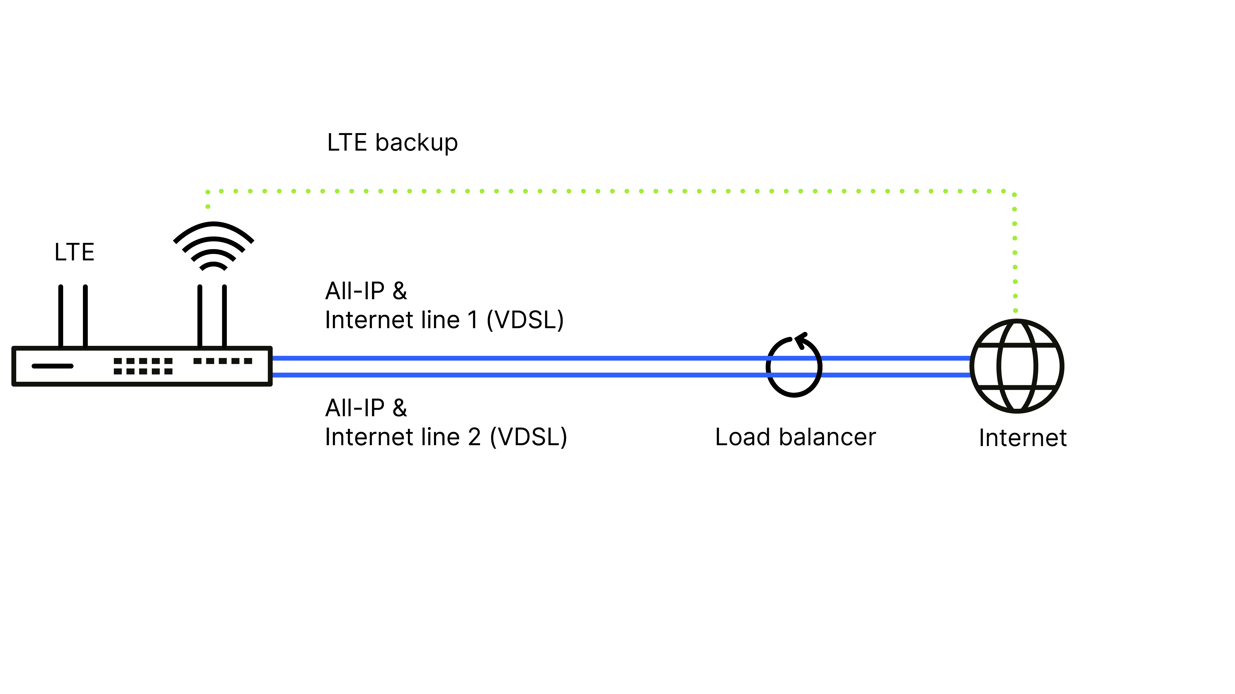 Secure SD-WAN with multi-WAN over VDSL, fiber & 4G incl. VoIP